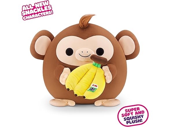 Snackles Series 2 Monkey & Dole 16 Inch Plush by ZURU, Ultra Soft Plush, Collectible Plush with Real Licensed Brands, Stuffed Animal, Giftable