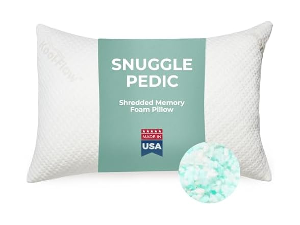 Snuggle-Pedic Standard Shredded Memory Foam Pillow for Sleeping - Cooling and Neck, Back, and Shoulder Support - Ideal for Side Sleepers, Pregnancy, Dorm Rooms, and Travel - USA Quality