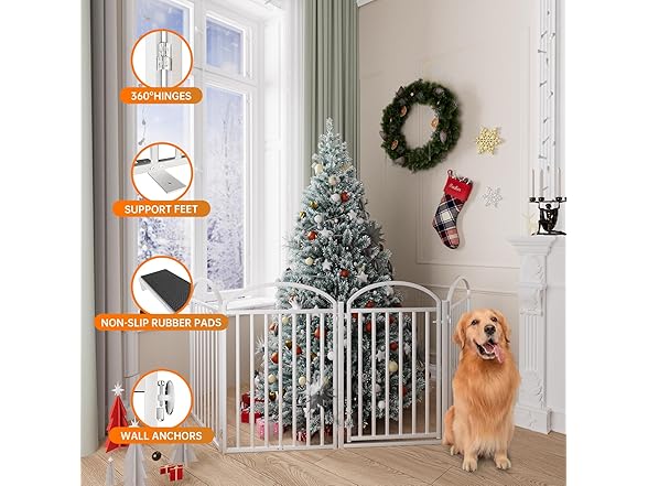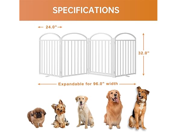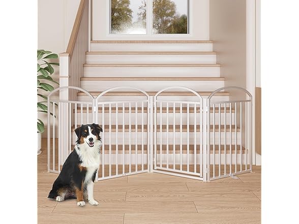 4 Panles Full Matel Freestanding Dog Gates with Door, 96"Extra Wide 32"Tall Free Standing Dog Pet Gate for Indoor & Outdoor. Foldable Pet Fences for Doorways, House, Stairs, Porch, Deck, Yard