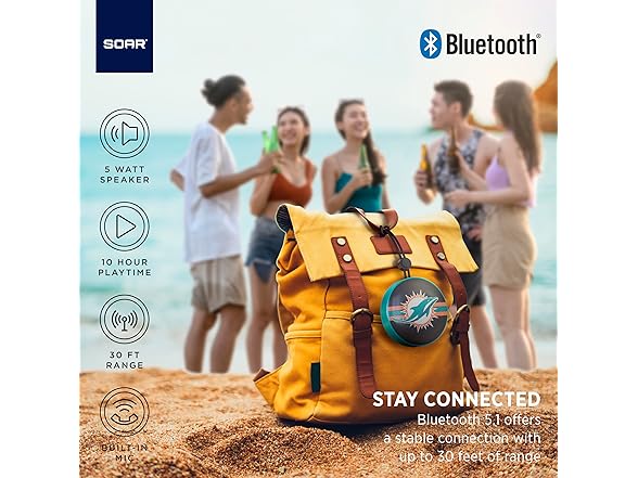 The SOAR Sports POP Wireless Speaker is your go-to companion for any event, delivering impressive 5W sound in a compact, portable design. It features a built-in bottle opener, so you're always ready to crack open a cold one while staying connected wirelessly. Whether you're tailgating, at the beach, or hanging out with friends, Bluetooth connectivity and universal compatibility make pairing with your devices quick and easy. The 10-inch adjustable lanyard lets you take the music wherever you go, and with up to 10 hours of playback, the good times can keep rolling all day long.