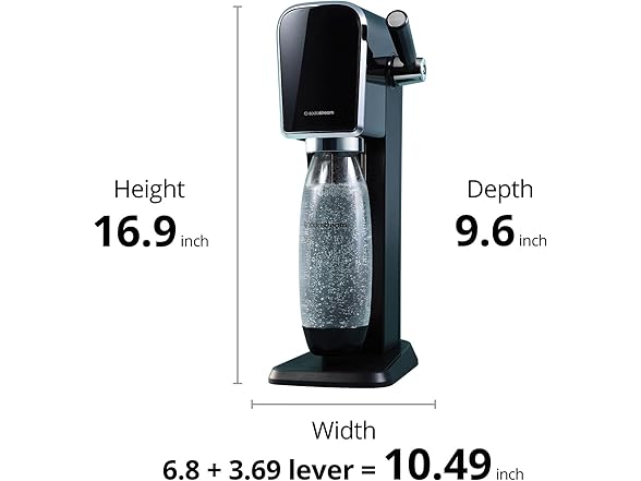 • Experience the convenience of the SodaStream ART with its easy-to-use snap-lock bottle insertion; quickly carbonate your water with minimal effort, making it suitable for busy mornings or spontaneous gatherings with friends