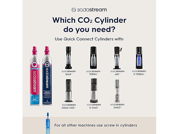 • SodaStream ART machines are only compatible with the SodaStream Quick Connect CO2 cylinder.