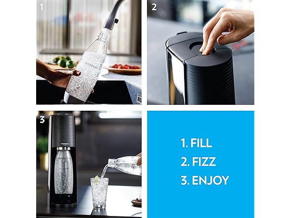 • Easy-to-use snap-lock bottle insertion for quick carbonation