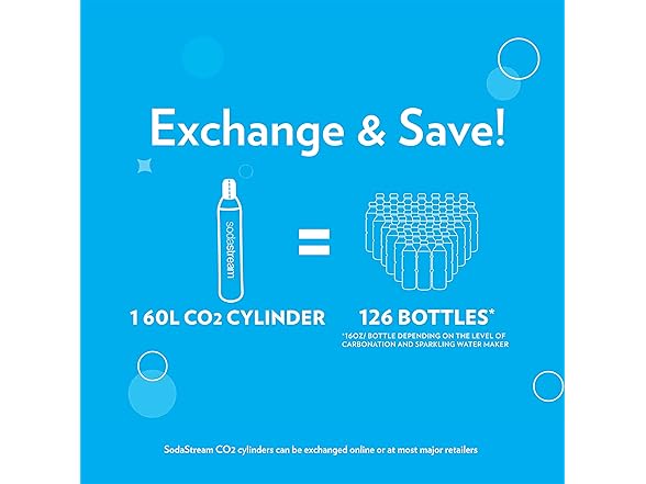 • Energy efficient, powered by Co2 cylinder Each cylinder carbonates up to 60 liters of water