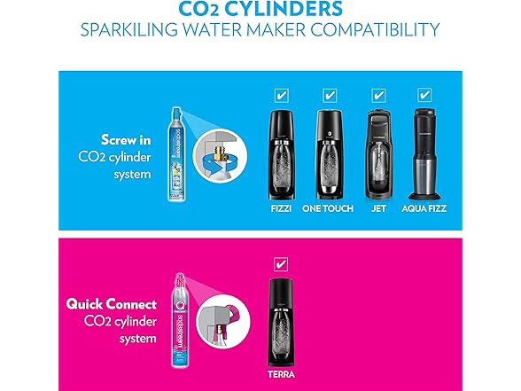 • SodaStream Terra machines are only compatible with the SodaStream Quick Connect CO2 cylinder