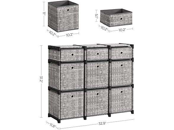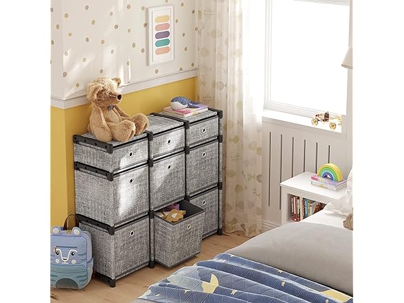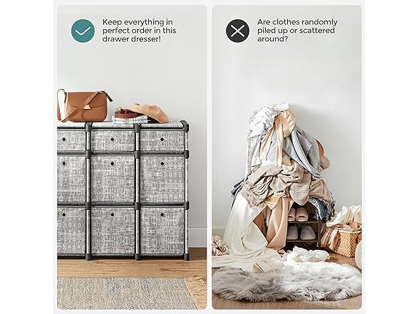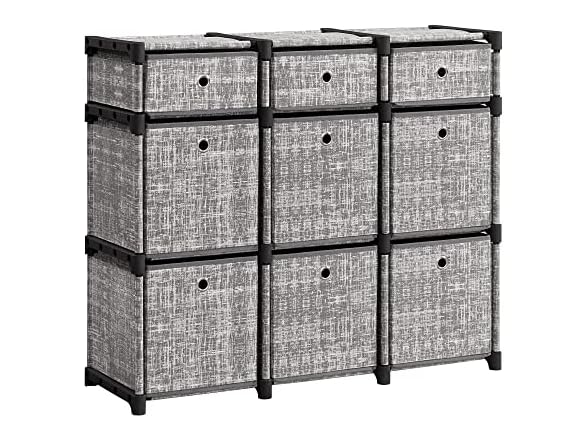 - What You Get: A shelving unit with 9 storage drawers, an anti-tip kit, detailed instructions, and a hammer for making your organization easier