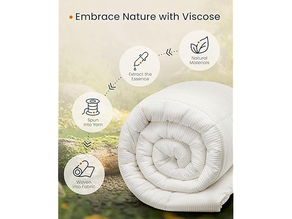 - 【BREATHABLE VISCOSE & SOFT MICROFIBER】Feel the luxury of our dual-sided comforter. One side features a breathable, moisture-wicking natural viscose blend, perfect for hot sleepers, while the other side provides cozy sleep with skin-friendly microfiber