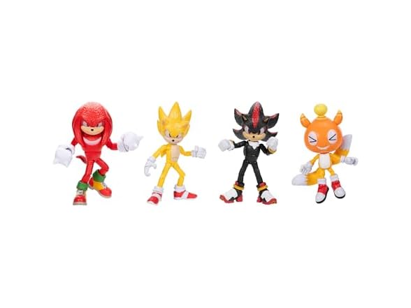 Sonic The Hedgehog 3 Movie 5-InchAction Figure 4-Pack, Articulated Figures from Jakks Pacific's Wave 2 Include Super, Shadow, Knuckles, and Chao Mascot Tails