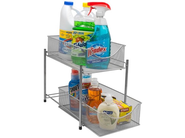 - 2 TIER MESH ORGANIZER BASKETS (BLACK) - Organize and store a wide variety of items including kitchen utensils, toiletries, office supplies, cleaning products, crafting materials, accessories, and more- The convenient 2-level basket organizer stand maximizes small spaces with sliding drawers for easy access and stowing items when not in use