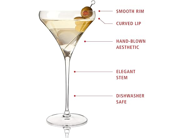 - EXQUISITE MARTINI GLASSES - These martini glasses bring a subtle elegance to your drink experience. Johann Willsberger’s hand-blown glass designs subtly update the iconic glass shape, making these martini coupes fresh, artistic, and current.