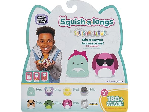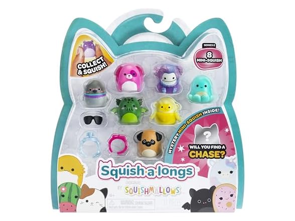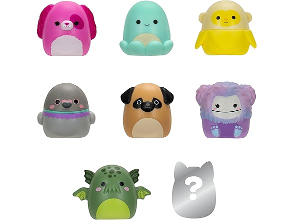 Squish-a-longs 8 Pack (Style 1- W2) - (8) 1” Mini-Squish with (2) Accessories, (1) Ring, and a Collector’s Guide - Collect, Trade, & Play
