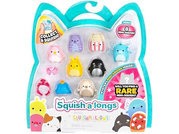 - SQUISH-A-LONGS Squish on the go with Squish-a-longs! These 1-inch plastic collectibles feature your favorite Squishmallows styles and make the perfect portable addition to any Squishmallows Squad.