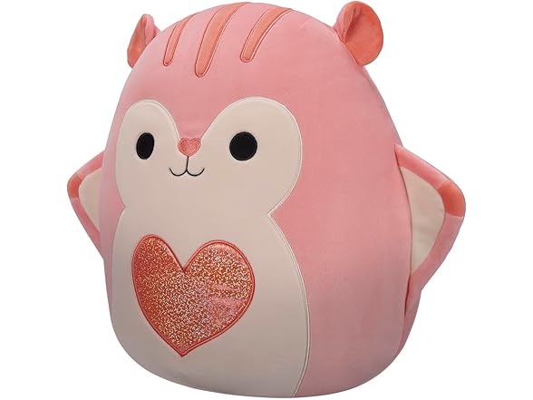 Squishmallows Original 14" Gabourey Peach Flying Squirrel with Sequin Heart - Official Jazwares Large Plush