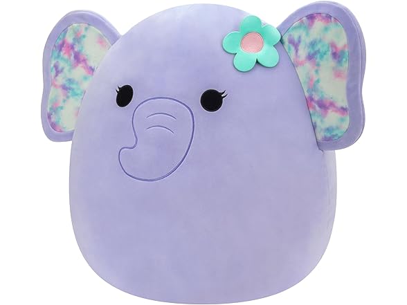 Squishmallows Original 20" Anjali Purple Elephant with Tie-Dye Ears and Flower - Official Jazwares Jumbo Plush
