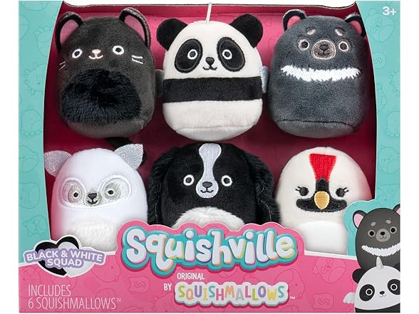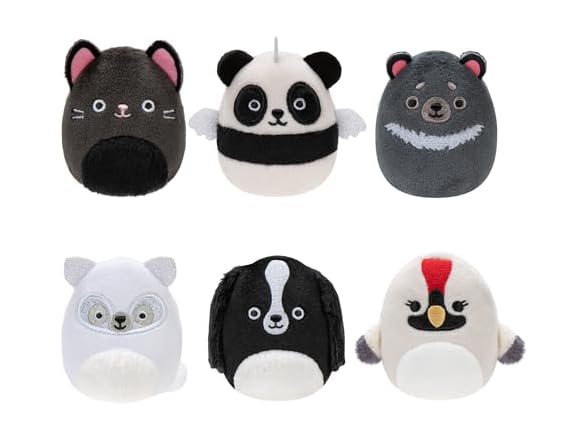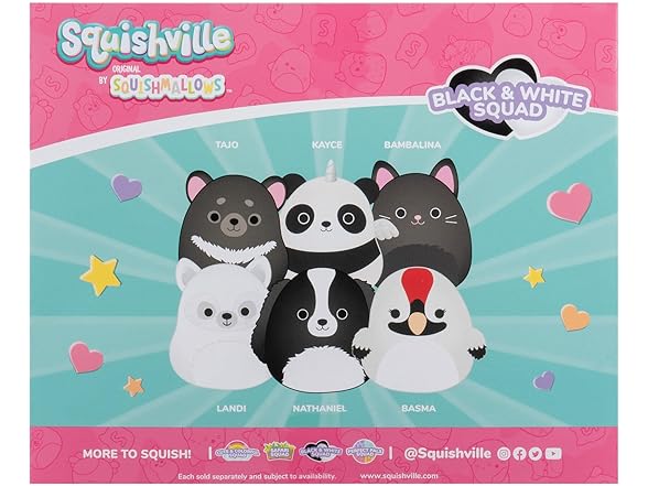 Squishville by Original Squishmallows Black and White Squad Plush - Six 2-Inch Squishmallows Plush Including Tajo, Kayce, Bambalina, Landi, Nathaniel, and Basma