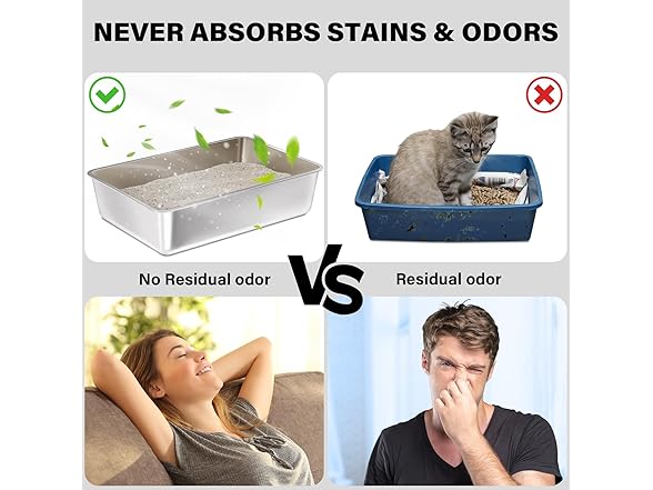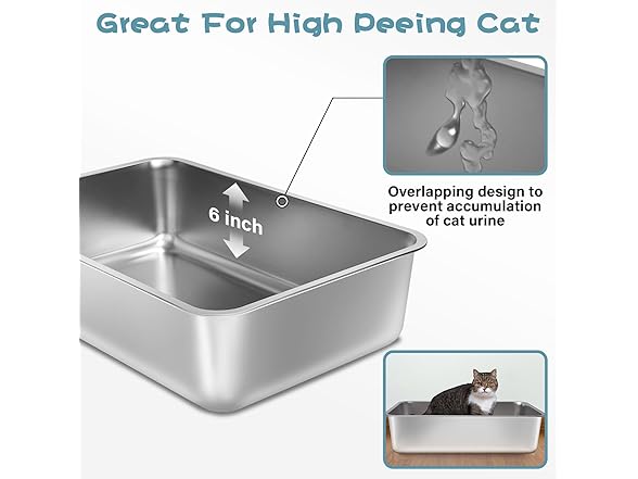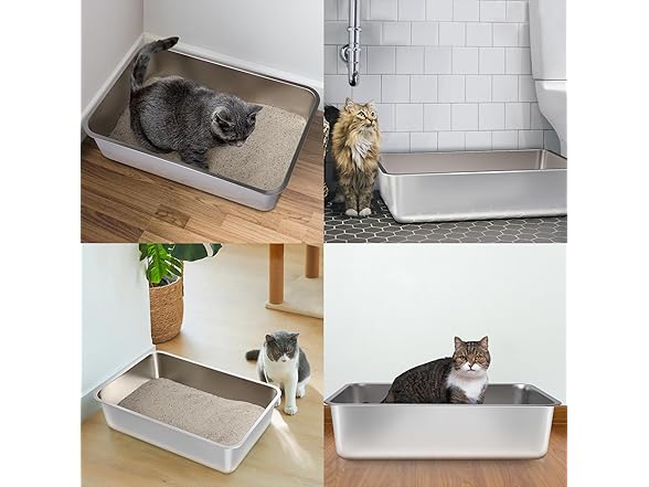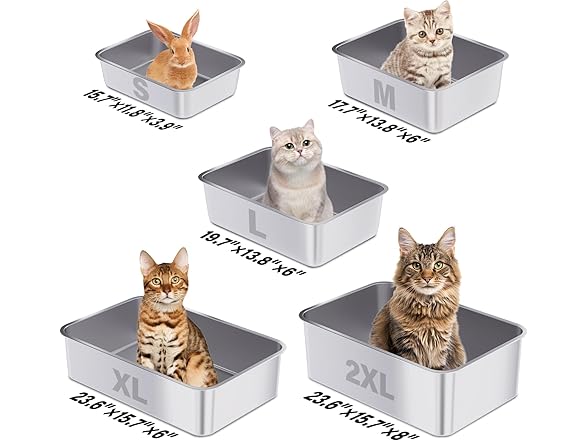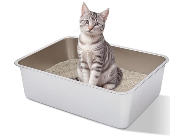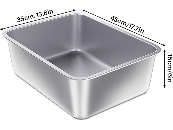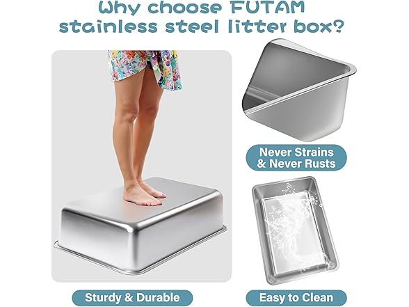 FUTAM Stainless Steel Litter Box, 17.7"x13.8"x6" Medium to Large Metal Litter Box for Kitty/Cat/Rabbits, Easy to Clean, Non Stick Litterbox No Smell for Adult Cats