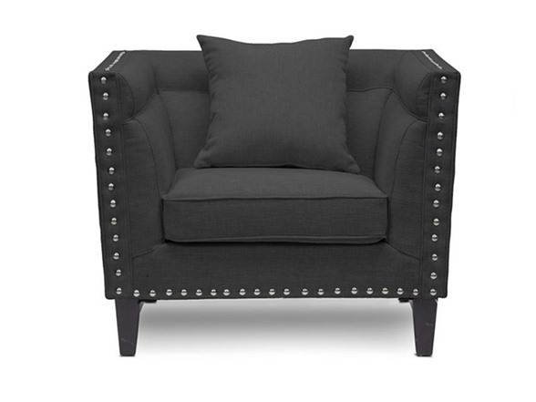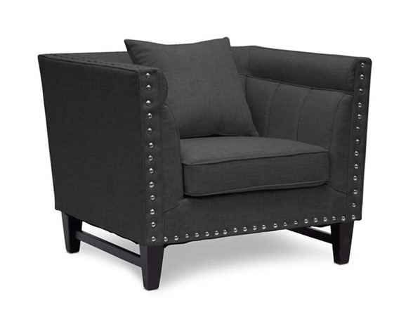 Finely tailored details sets the Stapleton Modern Arm Chair apart from the rest. This sumptuous seat is designed and constructed with abundant attention to every inch: a paneled backrest, matching linen piped seams, and silver upholstery tack accents are included. The Stapleton Contemporary Club Chair is manufactured in China with a frame consisting of birch and engineered woods, CA117 foam cushioning, and gray linen upholstery. Black lacquer legs with non-marking feet and a removable seat cushion are also included. Maintain the linen's beauty by spot cleaning stains and dirt as the need arises. Minor assembly is required.