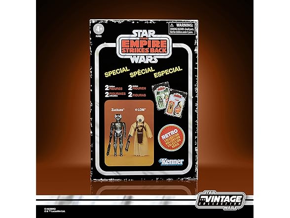 - NOSTALGIC FEEL: When Kenner first produced the 4-LOM and Zuckuss figures, the names somehow got reversed. In this Retro 2-pack, the original packaging has been recreated -- switched names and all