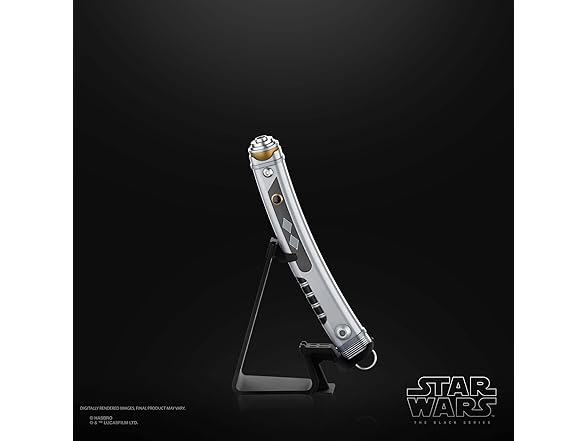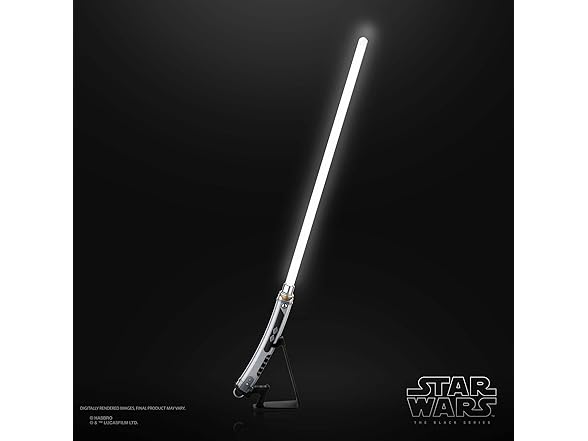 - INCLUDES STAND AND BARREL PLUG: Proudly display this electronic Lightsaber on the included stand, with or without the removable blade. Use the included barrel plug when the blade is not in use