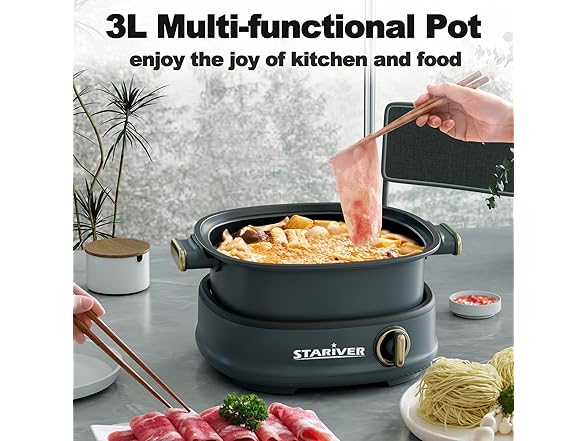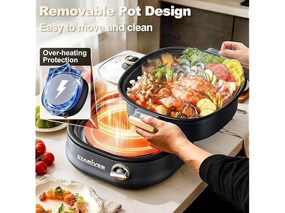 - 【Healthy Non-Stick Coating】Stariver electric cookware features a 100% food-grade premium non-stick coating free of PFOA. This feature also prevents food from burning during heating, allowing you to fully enjoy the stir-fry function. Health-conscious chefs particularly favor the safe and eco-friendly properties of this material.