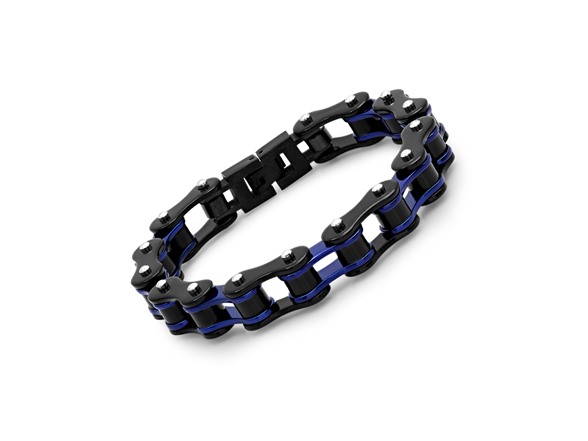 STEELTIME Men's two tone black ip stainless steel and blue ip stainless steel bicycle chain link bracelet