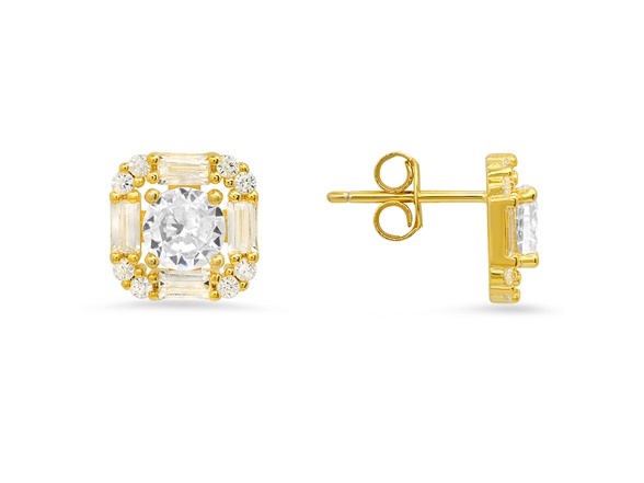 Queen Jewels Sterling Silver CZ Halo Stud Earrings | Choose Color