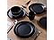 Stone Lain Jules Modern Stoneware 16-piece Round Black Dinnerware Set, Plates and Bowls Sets, Dish Set for 4, Black