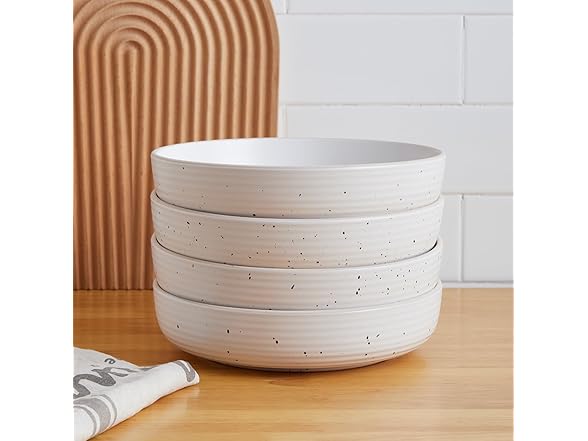 Add warmth and calm to your table with the Stone Lain Lauren 16-Piece Rustic Dinnerware Set in Speckled Off White. This artisanal-inspired set blends classic farmhouse charm with modern minimalism, making it the perfect foundation for relaxed meals and stylish gatherings. Featuring a smooth matte texture, lightly ridged rims, and a soft off white glaze with subtle speckling, each piece adds natural elegance to any dining occasion. The 16-piece set includes service for 4: four 10.31” dinner plates, four 8.07” salad plates, four 6.1” soup bowls (20.96 oz), and four 7.87” pasta bowls (29.76 oz). Made from thick, durable ceramic stoneware, this collection is built to handle daily use while elevating the look and feel of your meals. Designed for convenience, every piece is microwave safe and dishwasher safe, so you can go from serving to cleaning with ease. Whether you're plating a cozy dinner at home or setting a simple yet beautiful table for guests, Lauren helps you create an inviting dining experience. Subtle yet impactful, the speckled off white finish complements a range of table décor styles—from rustic and boho to modern and earthy. CARE INSTRUCTIONS: To keep your dinnerware looking its best, avoid extreme temperature changes and always allow hot dishes to cool before rinsing with cold water. Though dishwasher safe, handwashing with a mild detergent is recommended for long-lasting brilliance.