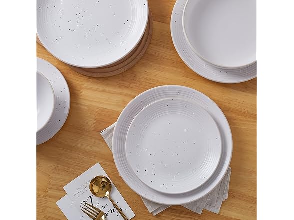- Timeless in tone, the Lauren dinnerware set features a speckled off white finish with softly ridged rims and a smooth matte texture—perfect for cozy farmhouse or minimalist tables.