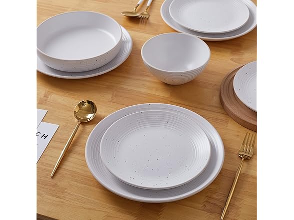 - Sized for versatility: includes 10.31" dinner plates, 8.07" salad plates, 6.1" soup bowls (20.96 oz), and 7.87" pasta bowls (29.76 oz) to cover every course.