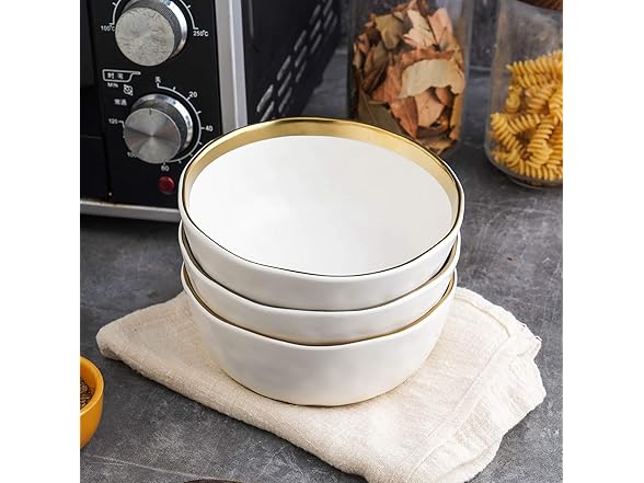 - Modern gold accents highlight the soft curves and textured surface, turning each dish into an eye-catching display.