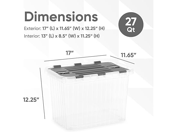Superio 26 L Deep Storage Container with Hinged Lid, 27.5 Quart (12 Pack)