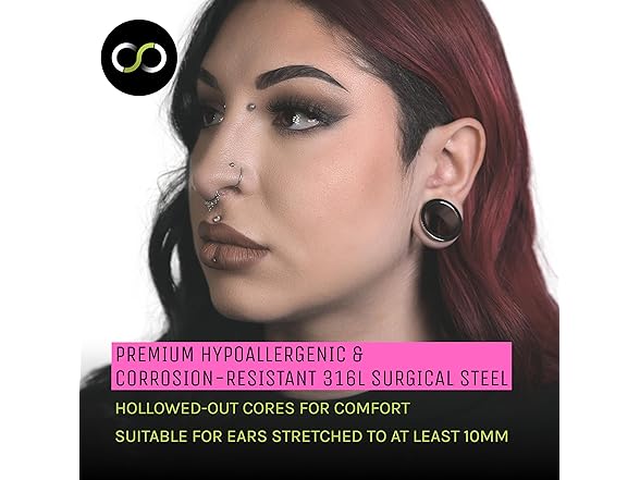 - PREMIUM MATERIALS: Made from high-quality hypoallergenic, corrosion-resistant 316L surgical steel with a smooth, mirror finish for zero irritation, and hollowed out cores for less weight and maximum comfort. The tunnels are labeled and packaged with a tamper-proof, hygienic seal to keep them nice and clean, reducing the risk of reactions.