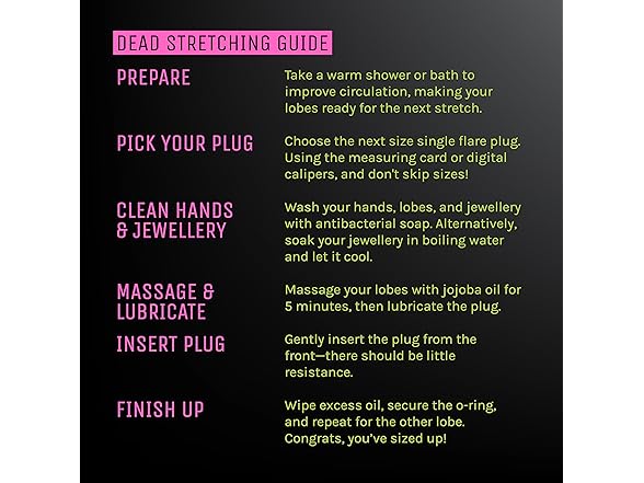 - STRAIGHT-FORWARD STRETCHING: The process of stretching your ears is simple, pain-free and one of the easiest (and coolest) body modifications you can do. Check out our easy-to-follow ear stretching guide for best results.