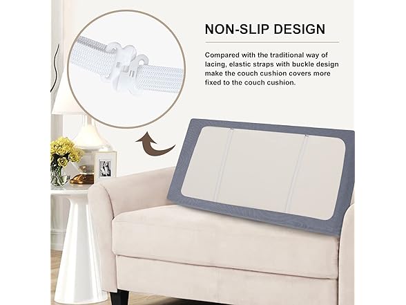 - 【STAY IN PLACE】With unique elastic straps and 4 elastic straps with splicing buckles sewn on the bottom, couch cushion replacement cover can be firmly fixed on the sofa cushion and will not move easily. When you need to clean and replace, you only need to untie the elastic band, remove the chair cover, and wash it in the washing machine.