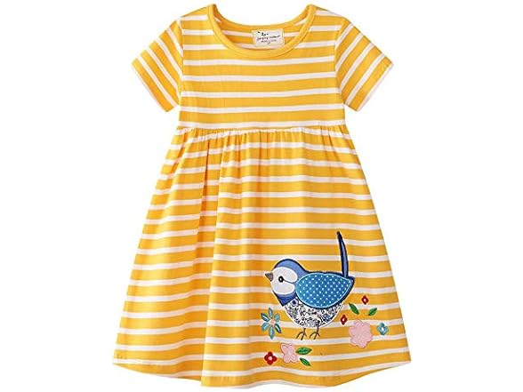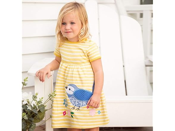 Summer Baby Girl Cotton Short Sleeve Stripe Lattice Dress Short Skirt (2T Height,80cm)