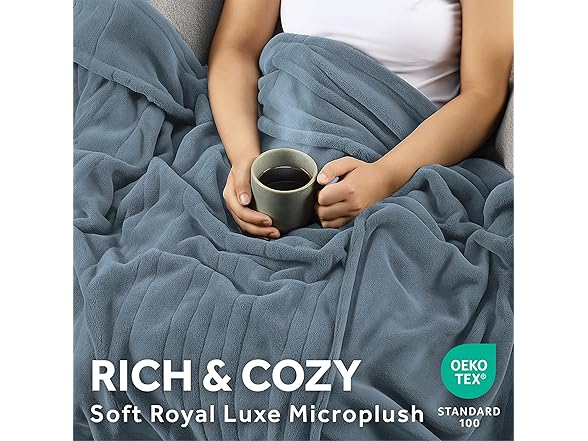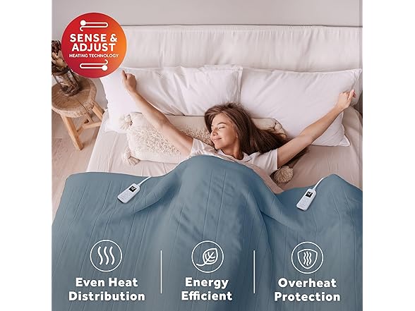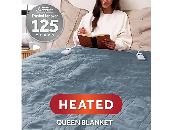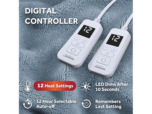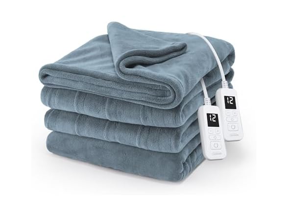Sunbeam Electric Royal Luxe Microplush Heated Blanket, 12 Heat Settings, 12-Hour Auto Shut-Off, Fast Heating, Warm and Cozy, Cadet Blue Color, Full (84" x 72")