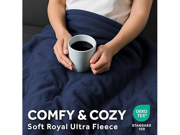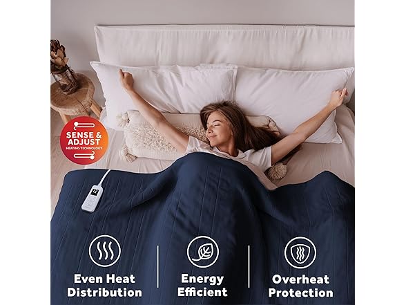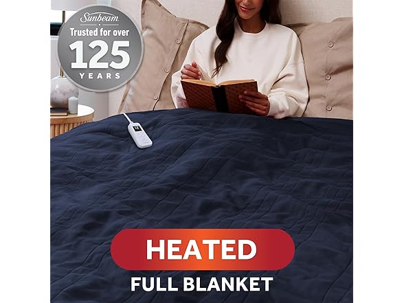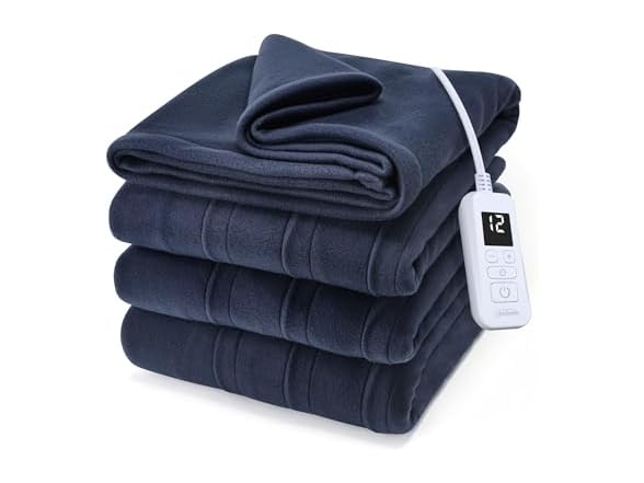 Sunbeam Royal Ultra Fleece Heated Electric Blanket, 12 Heat Settings, 12-Hour Selectable Auto Shut-Off, Fast Heating, Machine Washable, Warm and Cozy, Indigo