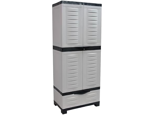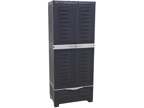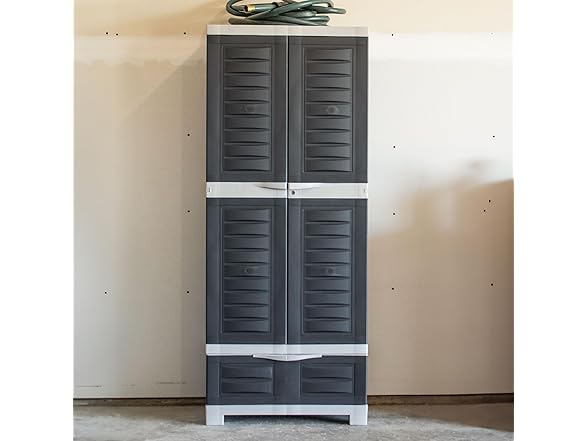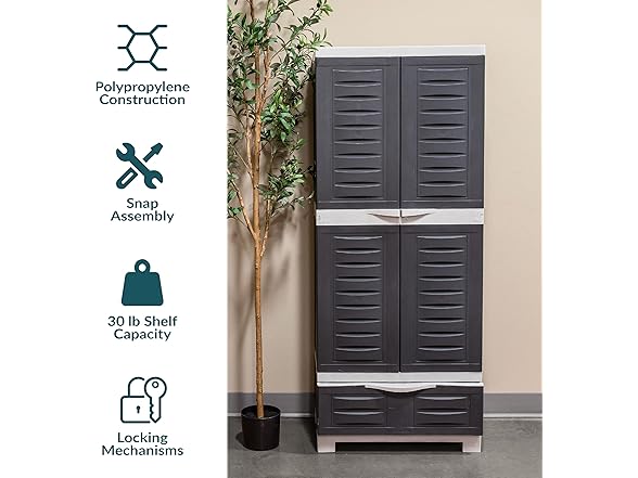 - LOCKABLE DOORS: The doors of the plastic garage cabinet can be locked to keep belongings safely contained. There are 2 keys included with the cabinet. The opaque doors of the cabinet ensure the contents remain concealed for a clutter-free look no matter where it's placed. Do not allow children or pets to play on or inside the cabinet. Keep the doors closed when not in use.
