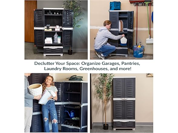 - GREAT FOR SPRING CLEANING, HOME PROJECTS, OR DAILY TIDYING: This cabinet is a go-to solution for homeowners, office staff, and DIYers who want a clean, clutter-free space. Designed to sit on flat surfaces like tile or concrete, it's a must-have for anyone interested in organizing garages, basements, or laundry rooms with durable, easy-to-maintain storage.