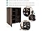 Stand this modern wine storage cabinet with door in a dining room, basement bar, or any indoor entertainment space to keep all bar essentials close by. This cabinet has plenty of room for anything you may need to enjoy a night with friends. The wine cabinet has an 8-bottle rack at the bottom, a 6-glass wine glass holder on top, and an enclosed cabinet with 4 fixed shelves that are convenient for mix-ins, tools, glassware, and anything else you may need. The shelves are hidden by a stylish door to conceal their contents for a clean appearance. The cabinet is made from durable pine and eucalyptus thermofused MDF with black, painted steel handles, feet, and wine glass hangers. The cabinet features a classic brown finish to complement any home decor style. The modern design of this bar cabinet with wine rack easily adds a contemporary accent to any indoor area.