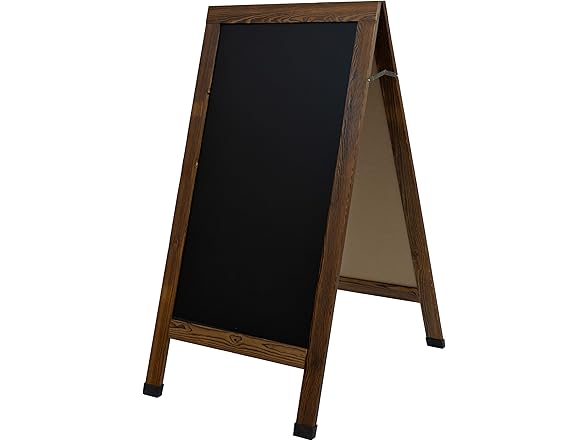 - FOR INDOOR OR OUTDOOR USE: This chalkboard menu board features a stylish pine wood frame with PE foot caps. The hinges are made from iron with a copper color clear coat. The backboard is made from a combination of iron and MDF for lasting strength. The chalkboard is made from porcelain steel so magnets can be used on the chalkboards. Due to its sturdy construction, this chalkboard can be used either indoors or outdoors.