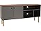 Add a stylish and convenient place to keep the TV, consoles, entertainment essentials, and decorative items with this mid-century modern entertainment center. The classic style of this TV storage cabinet is sure to complete any living room or entertainment space in the home. The mid-century TV stand is designed to fit flat screen TVs that are 55" or smaller. Made from medium-density particleboard with eucalyptus wood legs, this TV entertainment stand is durable enough to last for years. The back of the stand has two holes cut out to feed wires through the unit to keep them out of sight and access power outlets easily. With an enclosed cabinet on the side and fixed, open shelves, there is plenty of space to display DVDs, games, books, and decorative items.
