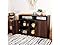 - Modern design: This buffet server cabinet is sure to complement many interior design styles with its brown finish and black accents. It is made from pine and eucalyptus thermofused MDF with painted steel feet and handles.