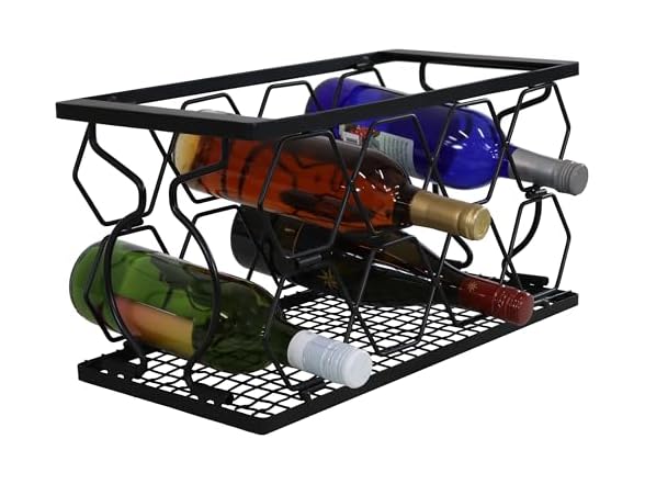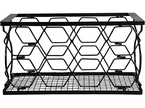 - GEOMETRIC DESIGN: This wine organizer is made from durable iron with a food-safe powder coating. The black finish and metal wire design add a modern touch to any kitchen or bar space.