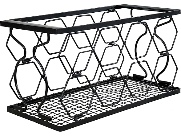 Organize and display up to 8 bottles of wine with this small wine bottle rack. The metal wine rack features 8 hexagon-shaped slots designed to fit 750 ml bottles, offering space for storing white wine and red wine of all kinds. The wine bottle organizer can be placed on a tabletop, on a kitchen countertop, in a pantry, or in a wine cellar to keep bottles of wine conveniently located. Made from durable iron, this tabletop wine rack features a food-safe, black finish and metal wire design for a modern look. It's easy to store the rack when not in use too. The rack folds down flat for compact storage. Just push in the sides and press downward on the top of the rack to collapse it in seconds.