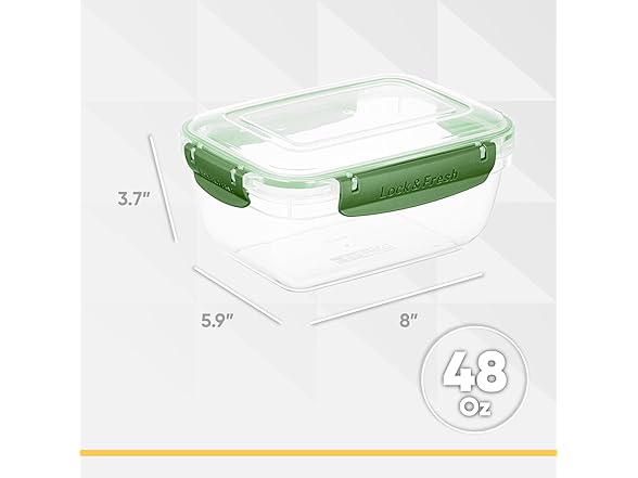 - Size- The size of this container (48 oz/ 6 Cups) is perfect for storing portions of leftover food, salads, or lunch to take along to work.