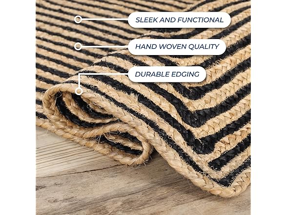 - 𝐇𝐀𝐍𝐃𝐖𝐎𝐕𝐄𝐍 𝐀𝐍𝐃 𝐃𝐔𝐑𝐀𝐁𝐋𝐄: Braided with 100% natural jute; Handwoven by skilled artisans; Ideal for high-traffic areas like kitchens, patios, the porch, deck, living rooms, bedrooms and hallways; Perfect for homes with children and pets