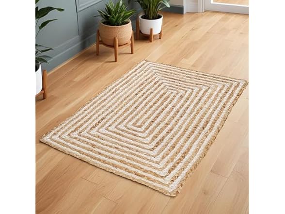 - DURABLE CONSTRUCTION: Crafted from 100% Jute; handwoven by skilled artisans; flat-weave; meant for indoor use; rug can fit under most doors; ideal for high-traffic areas; perfect for homes with children and pets.Construction type:Hand Made
