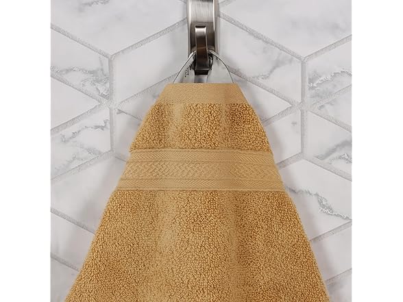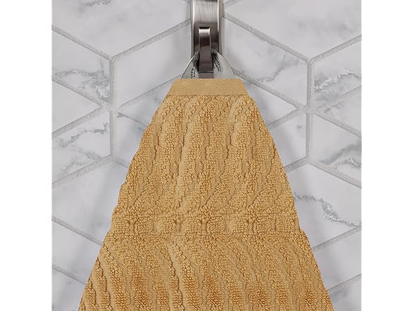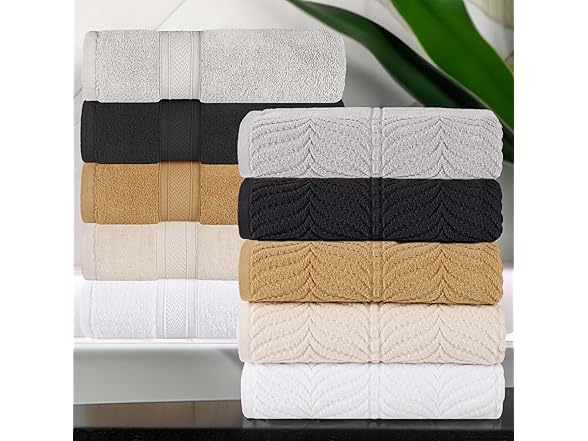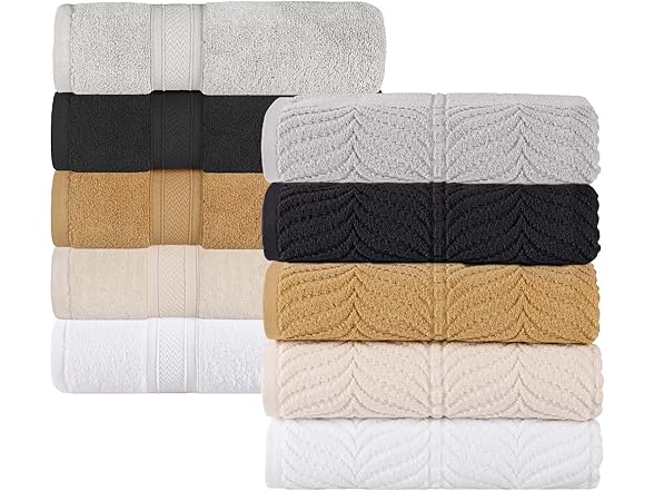 - ELEGANT DESIGN: This bountiful bundle features an assortment of solid and jacquard, chevron patterned towels for unique style; excite any master bath, powder room, or guest bathroom with this set; hanging loop allows you to easily hang each towel